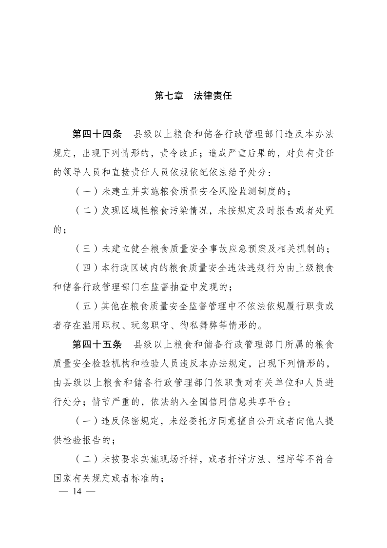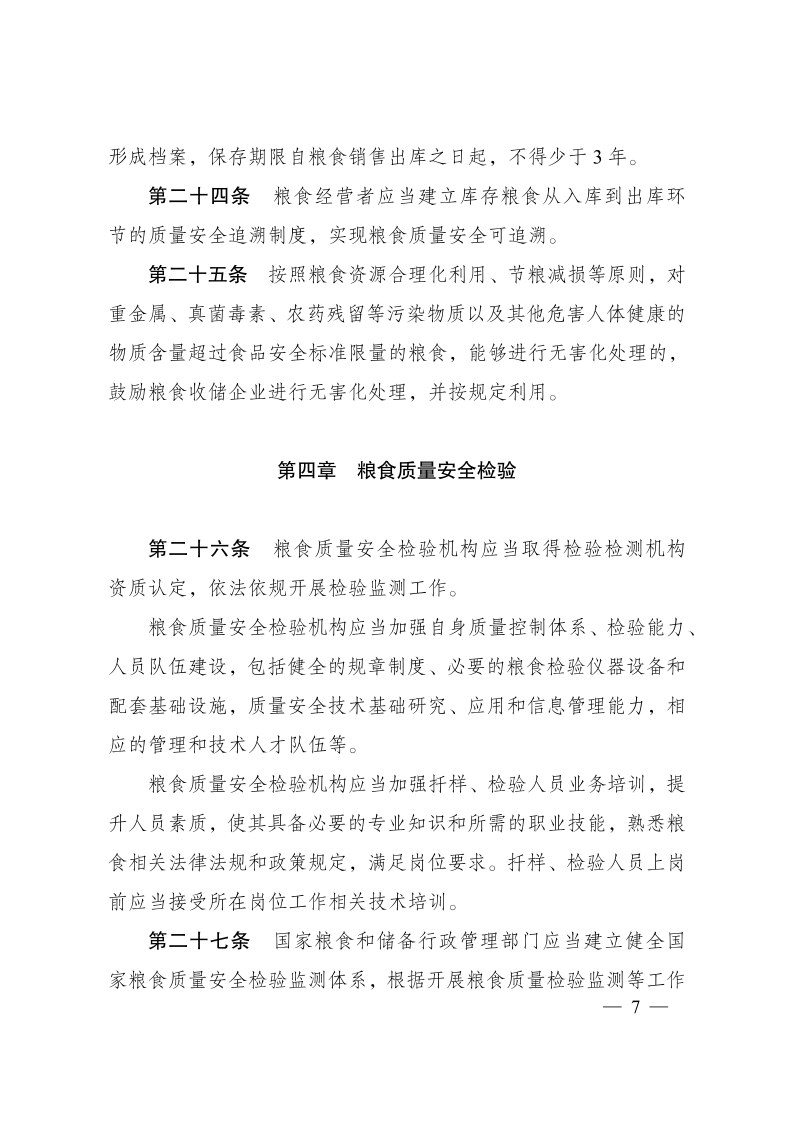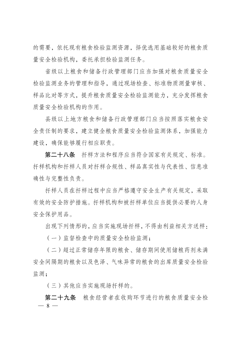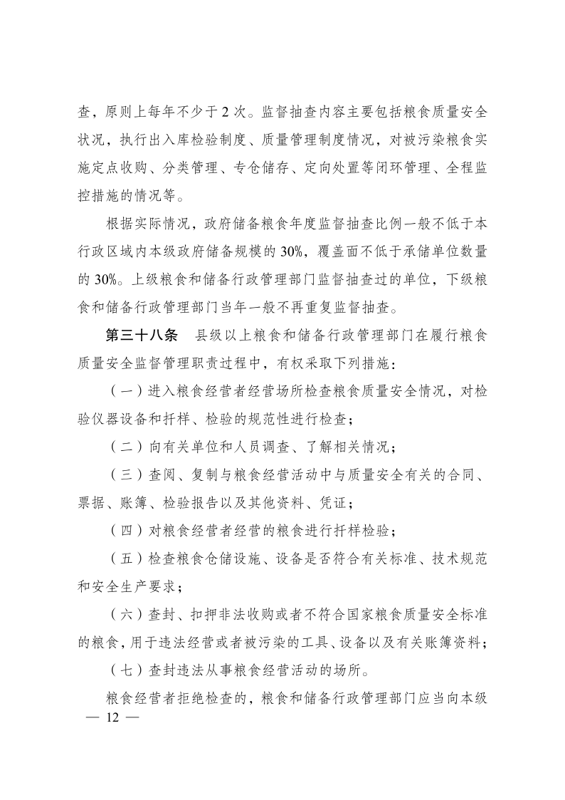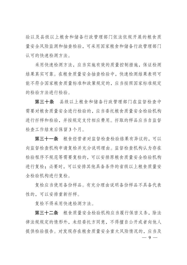 糧食質(zhì)量安全監(jiān)管辦法